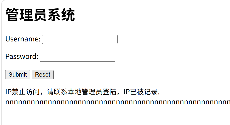解码为test123,这个东西应该是登岸框的暗码,填入admin/test123(账号暗码)。之后出现错误: