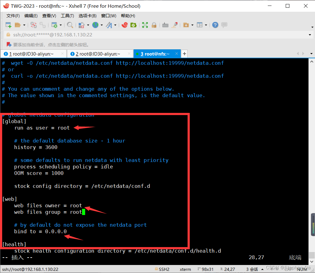 - [root@nfs ~]# vim /etc/netdata/netdata.conf