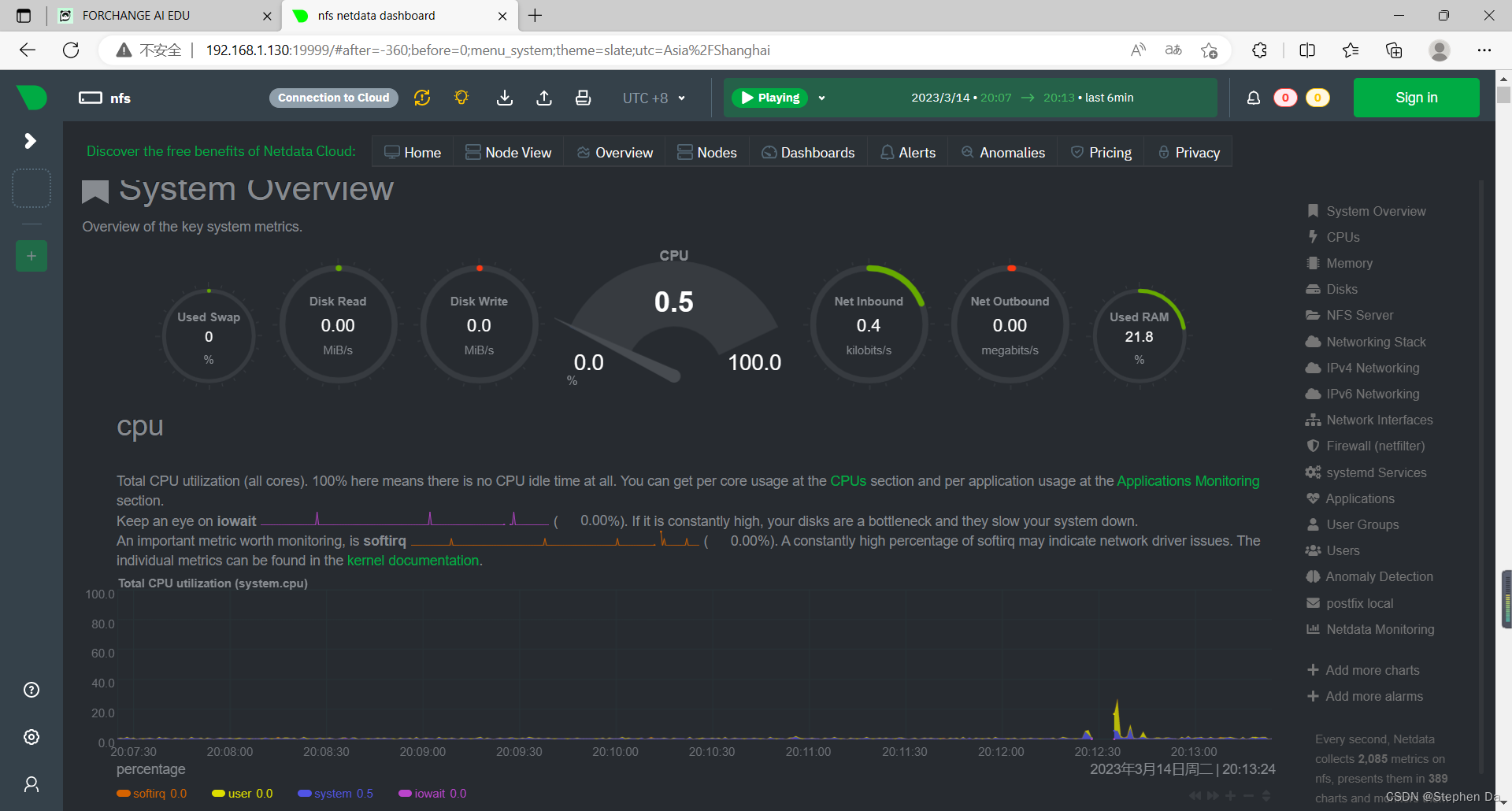 浏览器访问192.168.1.130:19999(留意你的ip不一定是跟我一样的啊)