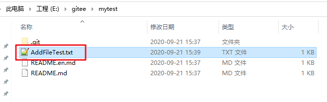 在本地添加文件,如下,添加一个AddFileTest.txt文件。