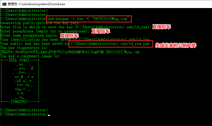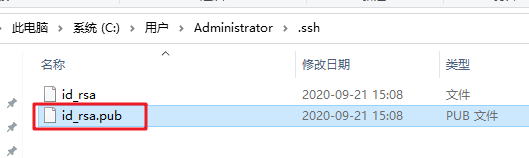 可以看到,我们生成的公钥文件id_rsa.pub路径:C:\User\Adminstrator/.ssh/id_rsa.pub