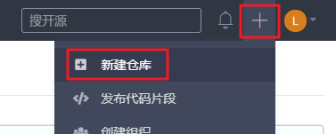 点击右上角的 +号,新建仓库