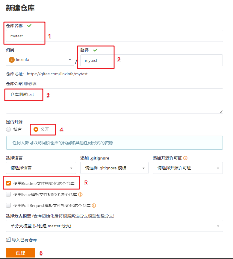 如下,填写仓库信息,最后点击创建即可。