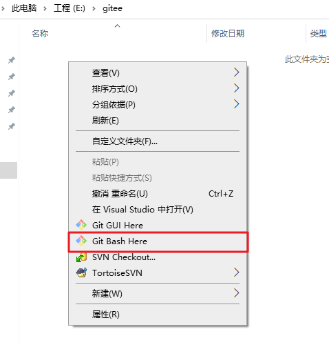 接着,在本地目录空白处右键菜单,点击Git Bash Here。