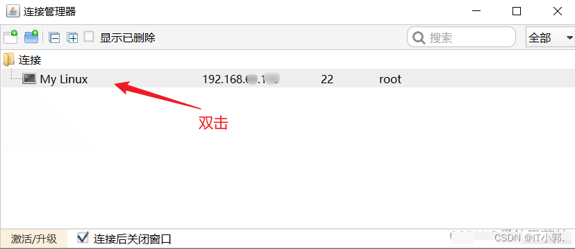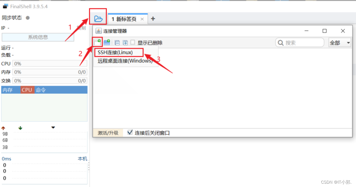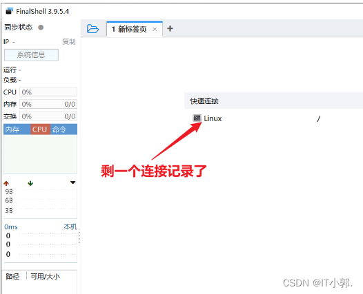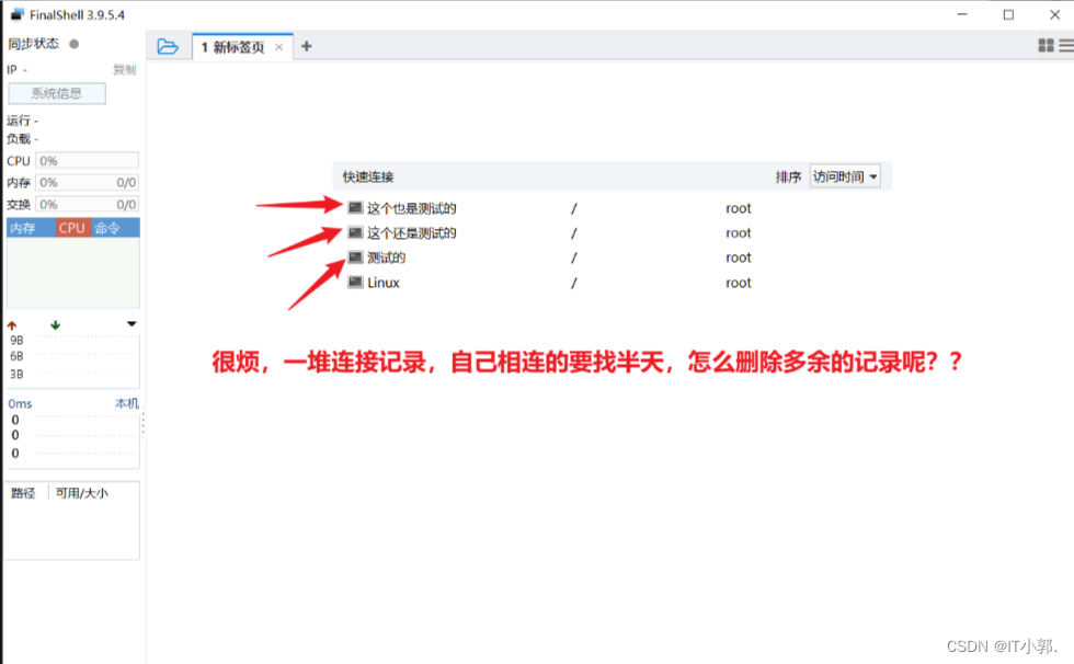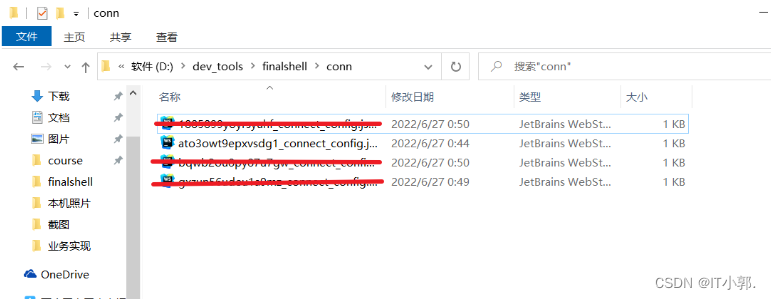 可以到软件安装目录的conn中,把新建的都删掉。固然,你一开始没注意,可能不记得哪个是要留下的,可以对比时间,如果对比时间还是分不清,可以全部删掉(或直接把conn文件夹删掉),然后重新打开FinalShell,重新执行第四步连接远程 linux 服务器,我这里知道要留下哪个,就不全删了