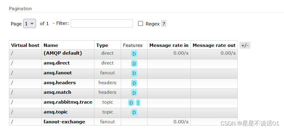 可以看到fanout范例,生产者发送一个消息,所有的斲丧者都能接收到,这个范例不消设置路由