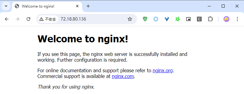 正常情况应该可以看到Nginx的接待页面了,如果看不到就是防火墙的问题,设置下防火墙放通即可。