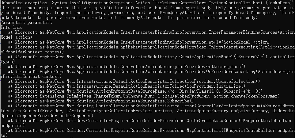 而错误提示非常的清楚,你要使用 FromQuery 特性,现在我们给参数加上这个特性- [HttpPost]