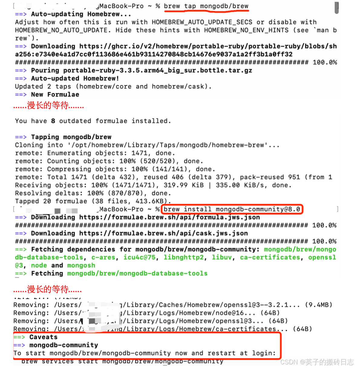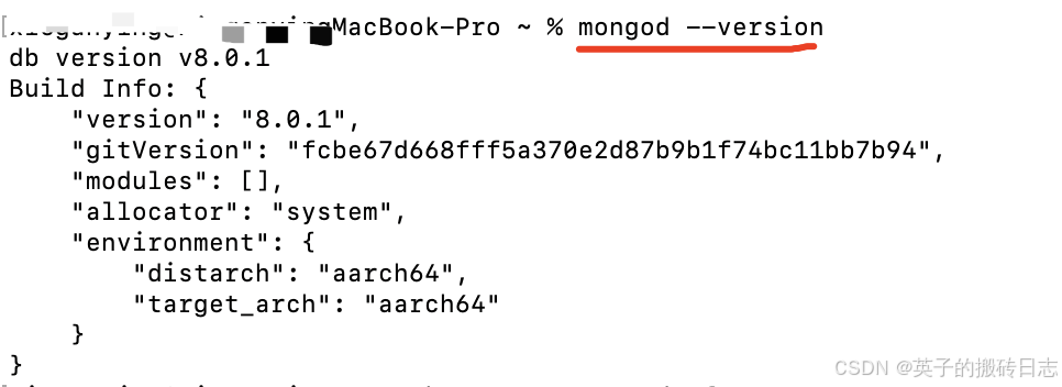 - brew install mongodb-community@8.0 // 安装的是mongodb 8.0社区版