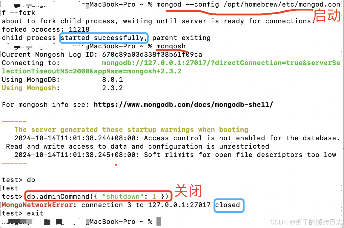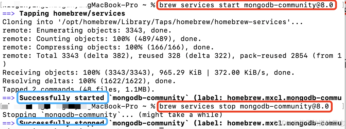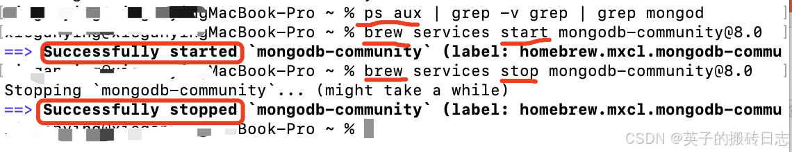 - brew services stop mongodb-community@8.0 // 停止
