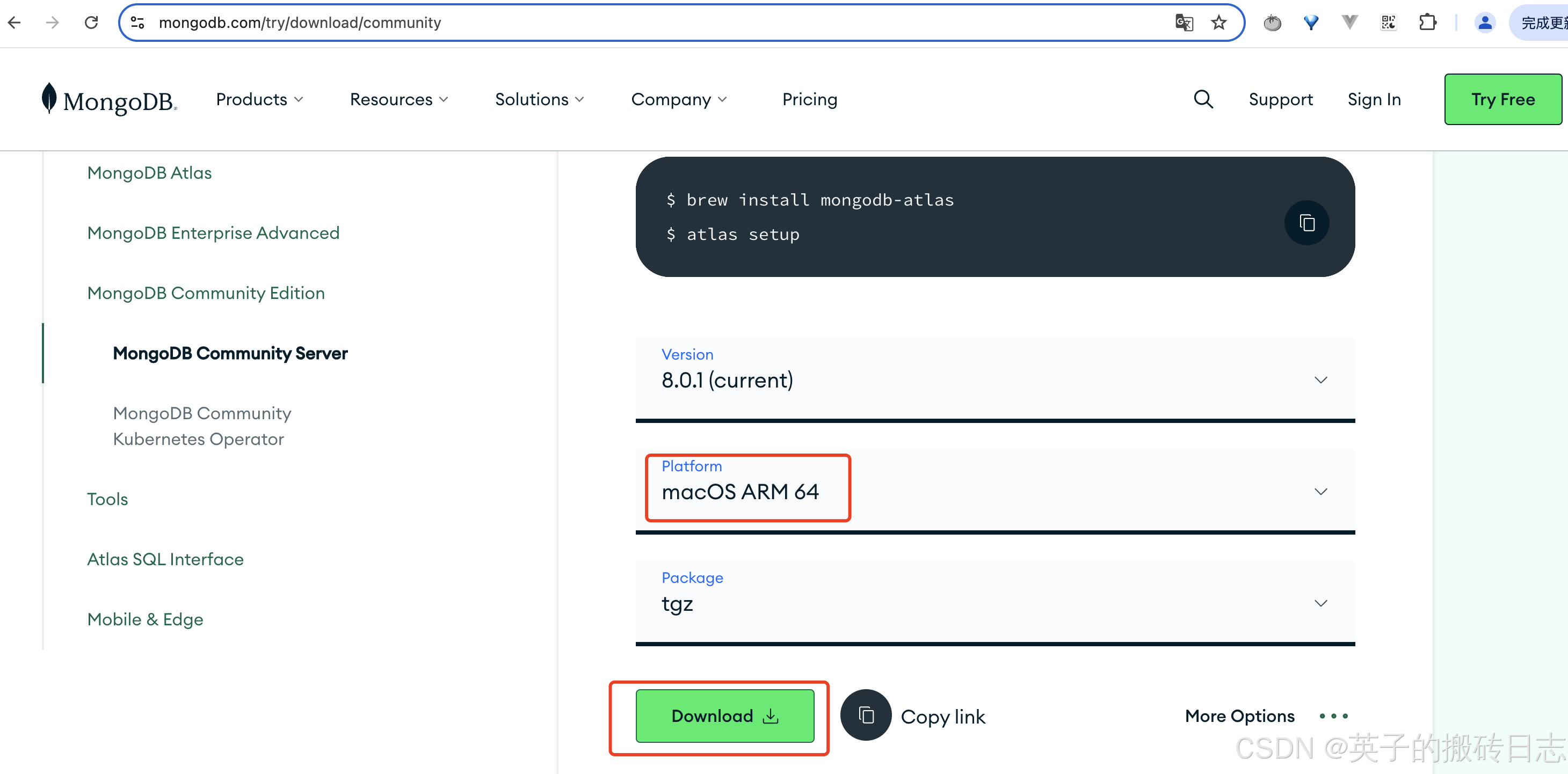 下载地点:https://www.mongodb.com/try/download/community