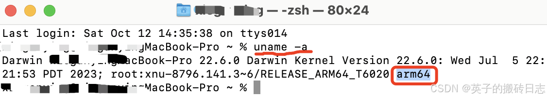 数据范例描述String字符串,存储数据常用的数据范例。在 MongoDB 中,UTF-8 编码的字符串才是合法的。Integer整型数值,根据所采用的服务器,可分为 32 位或 64 位。Boolean布尔值。Double双精度浮点值。Min/Max keys将一个值与 BSON(二进制的 JSON)元素的最低值和最高值相对比。Array用于将数组或列表或多个值存储为一个键。Timestamp时间戳,记录文档修改或添加的具体时间。Object用于内嵌文档。Null用于创建空值。Symbol符号。该数据范例基本上等同于字符串范例,但差别的是它一般用于采用特殊符号范例的语言。Date日期时间。用 UNIX 时间格式来存储当前日期或时间。可以指定日期时间:创建 Date 对象,传入年代日信息。Object ID对象 ID。Binary Data二进制数据。Code代码范例。Regular expression正则表达式范例。 四、附1:怎么看Mac是macOS arm64 照旧 macOS x64 ?