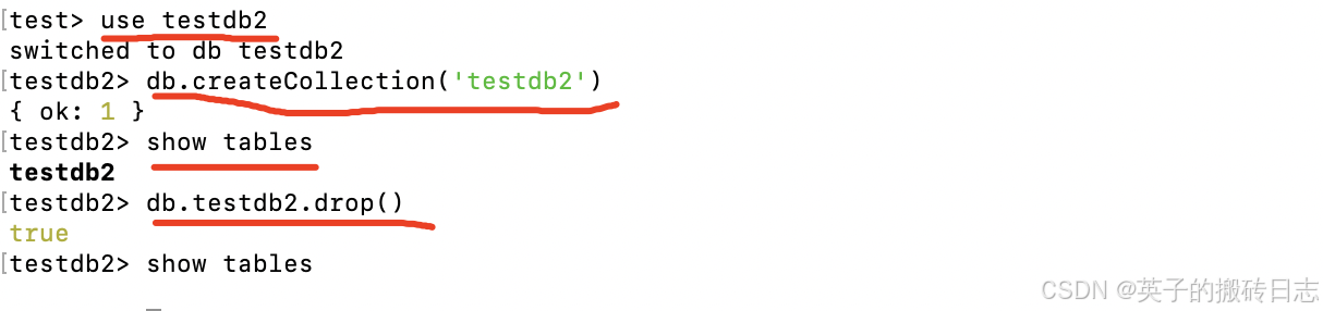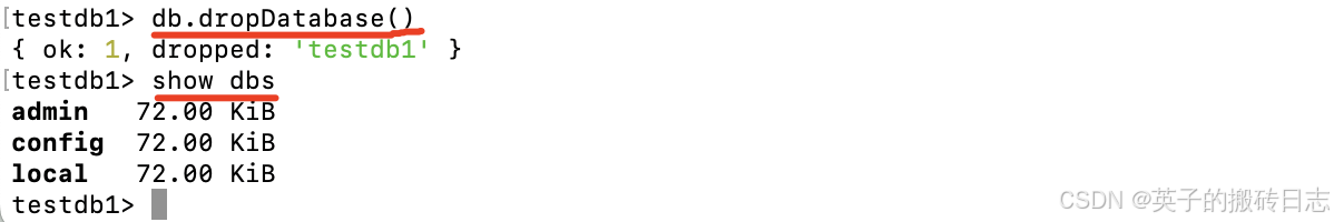 - db.dropDatabase() // 删除数据库