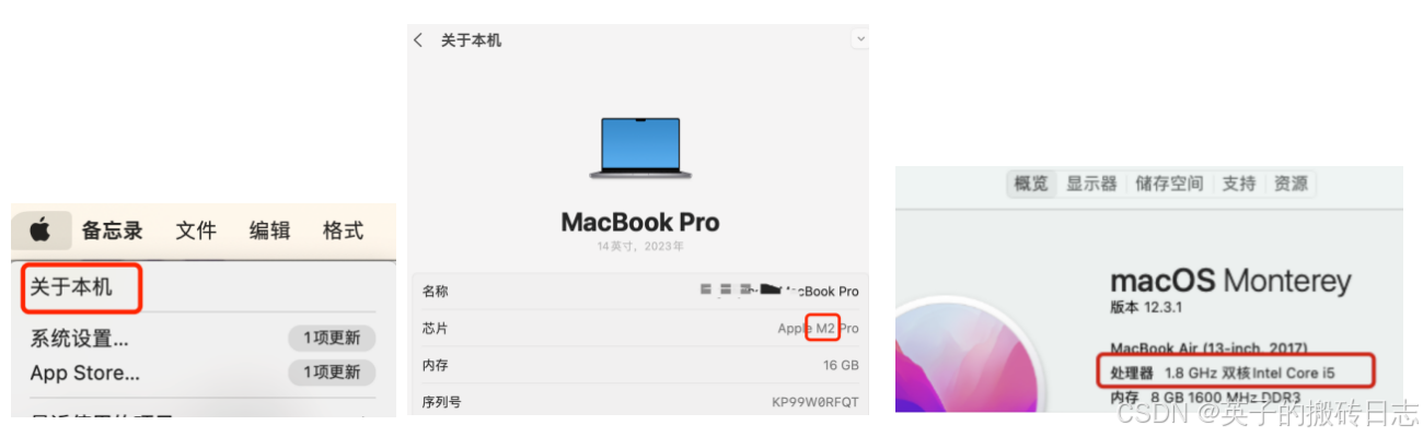 方法2: 点屏幕左上角苹果图标,点击关于本机,如果是M1/M2 选 arm64, 如果是 Intel 就是 x64