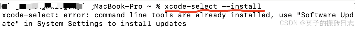2、 条件:检查mac系统已安装brew和xcode,如果没有xcode可实验:xcode-select --install,如下则表现系统之前已经安装过了