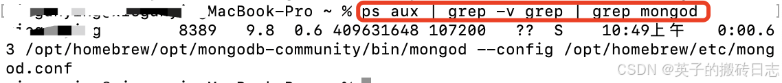 - ps aux | grep -v grep | grep mongod // 查看 mongod 服务是否启动