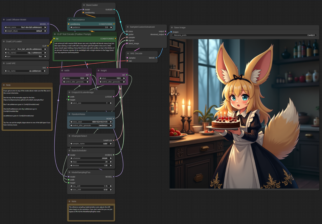 至此,Flux.1的ComfyUI工作流就可以应用了。