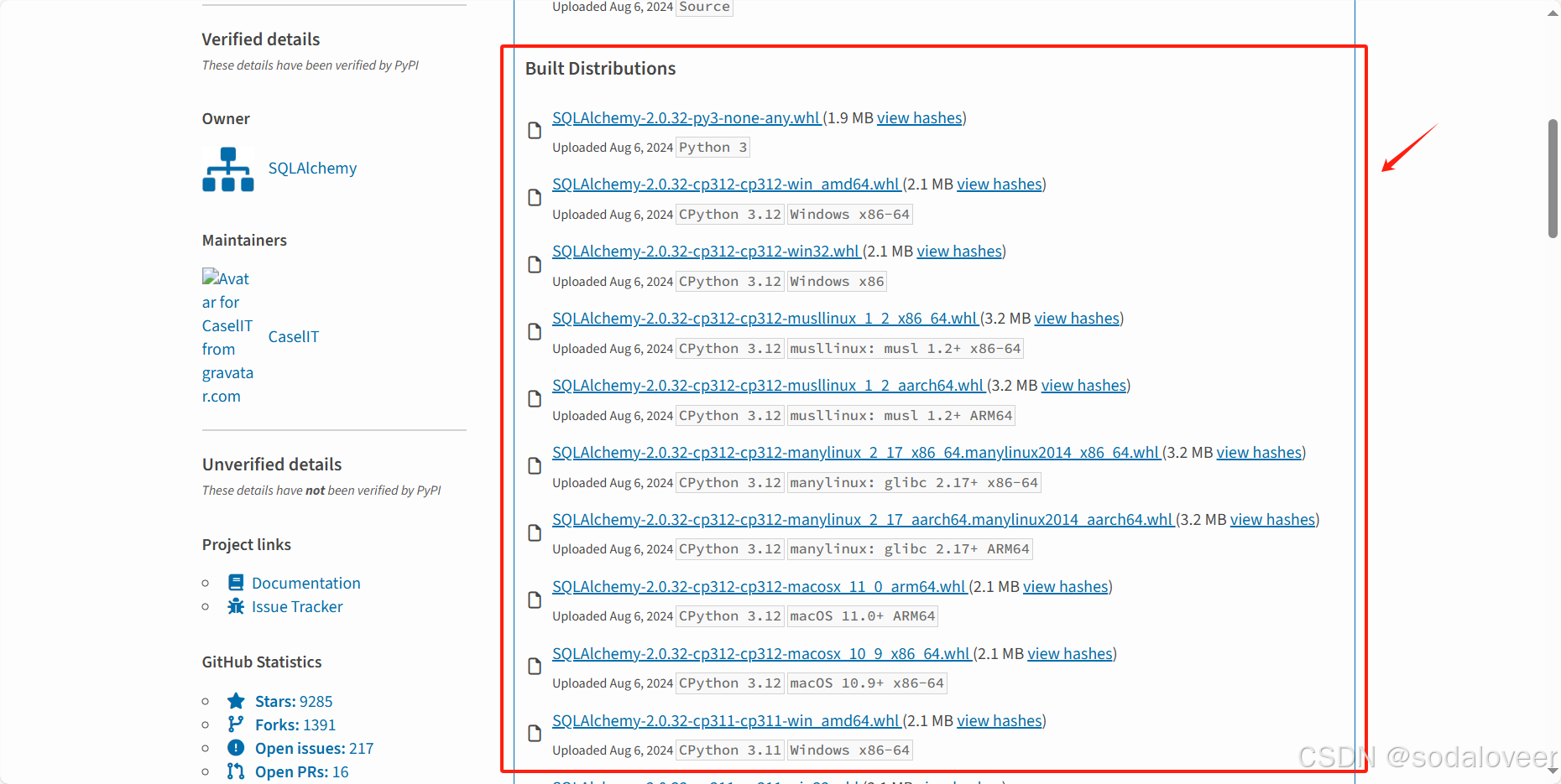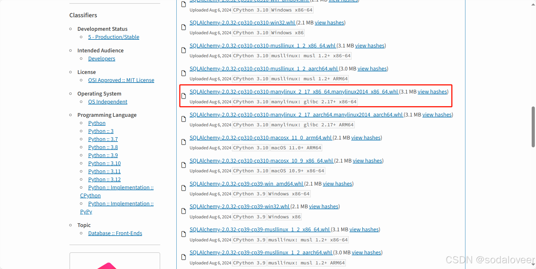 了,下载包罗此中一个的版本即可,比方:安装sqlalchemy的包名称含有 “cp310-cp310-manylinux_2_17_x86_64” 即可。