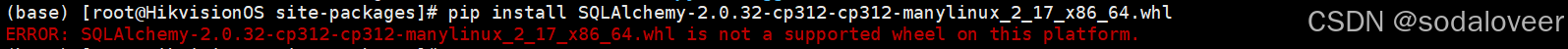 由于安装sqlalchemy的版本是cp312-cp312-manylinux_2_17_x86_64,现在pip不支持。