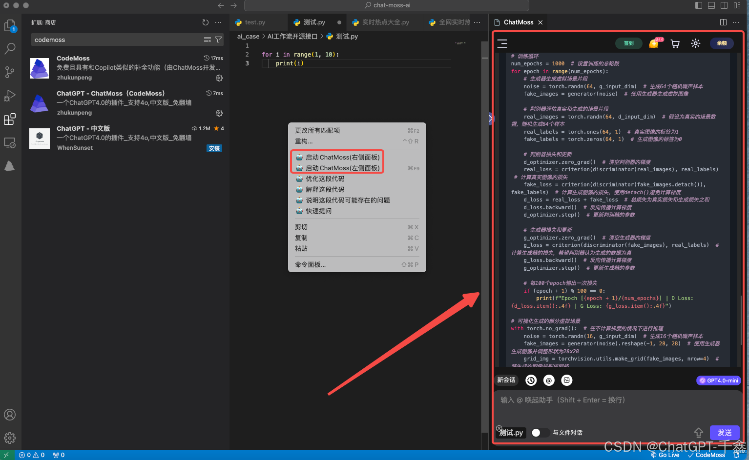 设置完成后,我们来实际体验一下CodeMoss在开发中的应用。