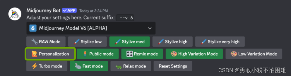使用/settings,点击Personalization按钮,让它变绿就行。