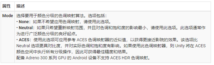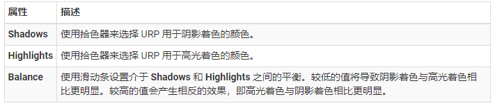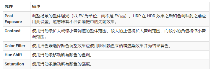 后期处理效果可能会占用大量帧时间。如果在移动设备上使用 URP,默认情况下以下效果对移动设备是最“友好”的: