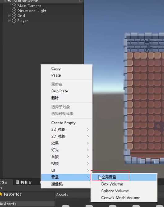 右键创建一个volume,选择global volume全局见效