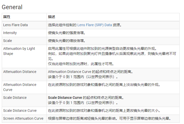Unity 的可编程渲染管线 (SRP) 包括 Lens Flare (SRP) 组件,该组件可在场景中渲染镜头光晕。这是 SRP 中与内置渲染管线的 Lens Flare 组件(该组件与 SRP 不兼容)等效的组件。可以将 Lens Flare (SRP) 组件附加到任何游戏对象,但某些属性仅在 Lens Flare (SRP) 组件附加到光源时才会出现。