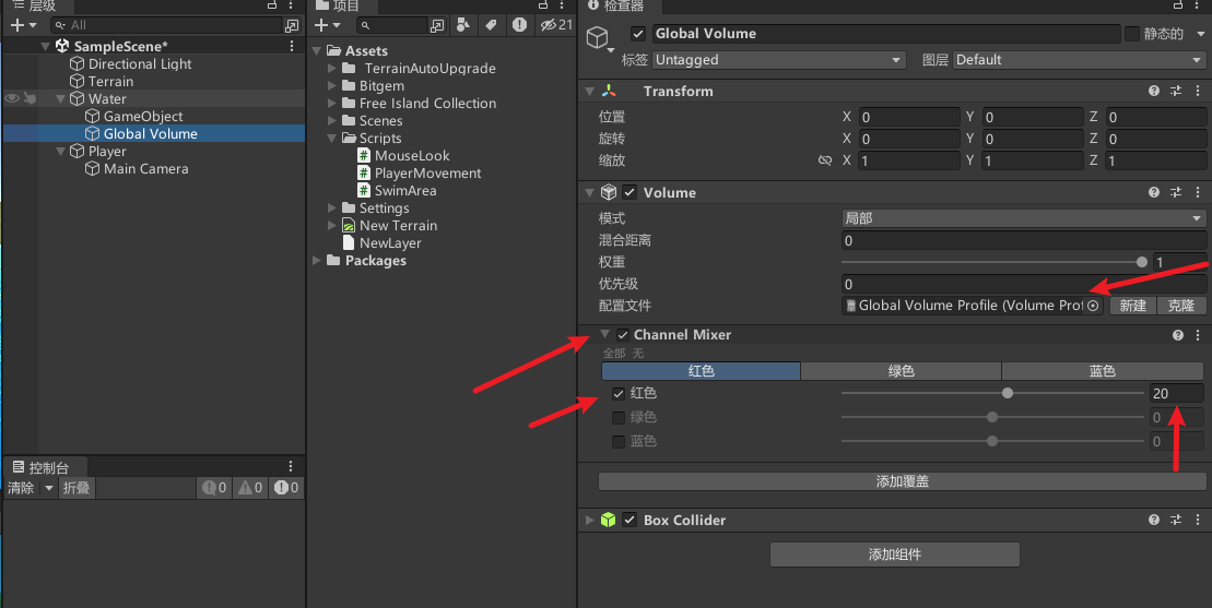 如果场景中有其他体积,请更改 Priority 属性的值,确保来自该体积的覆盖具有比其他体积更高的优先级。