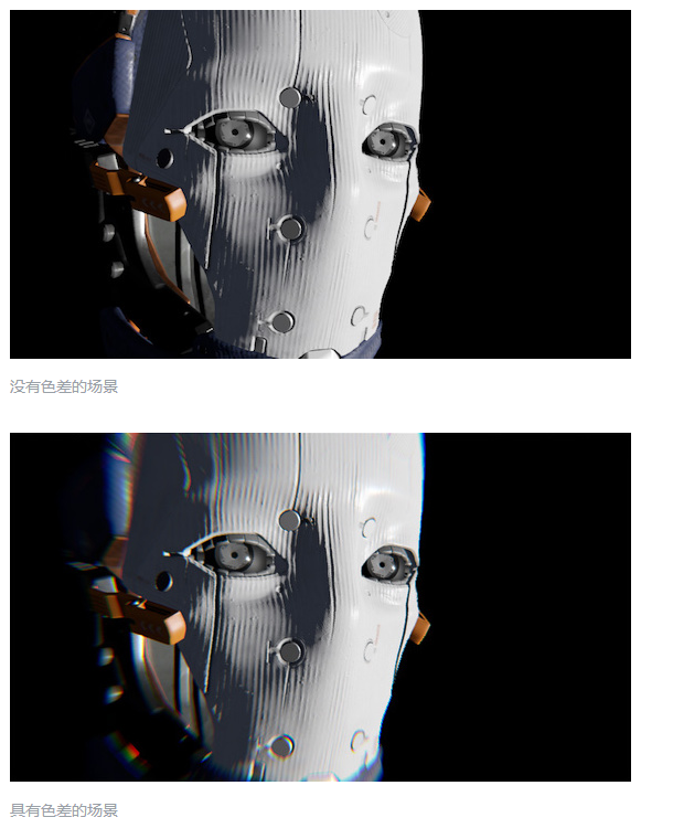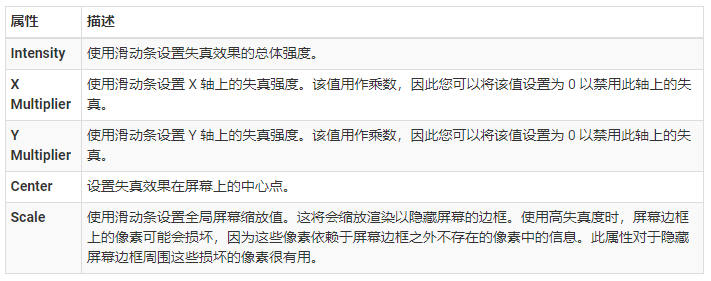 Intensity:设置色差效果的强度。值范围在 0 到 1 之间。该值越大,效果越强烈。默认值为 0,表现禁用该效果。