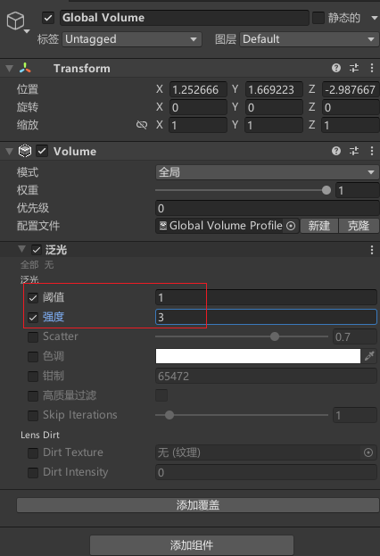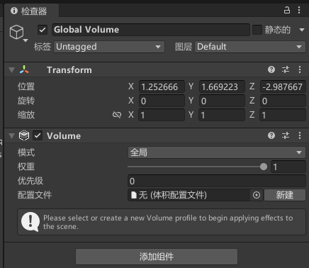 可以看加入景中生成了一个名为Global Volume的物体
