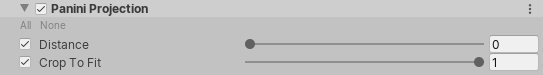 此效果可资助您在具有很大视野的场景中渲染透视图。Panini 投影是圆柱投影,这意味着它会使垂直的直线保持垂直。与其他圆柱投影不同,Panini 投影也使穿过图像中心的径向线也保持直线。