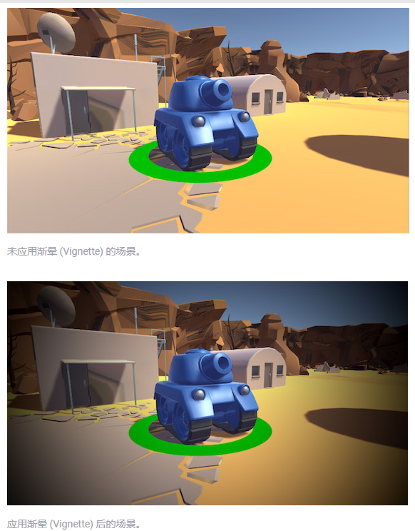 在 VR 应用程序和游戏中,某些后期处理效果会导致用户恶心和迷失方向。要减少快节奏或高速应用程序中产生的晕动症,请对 VR 使用渐晕效果,并制止对 VR 使用镜头失真、色差和运动含糊效果。