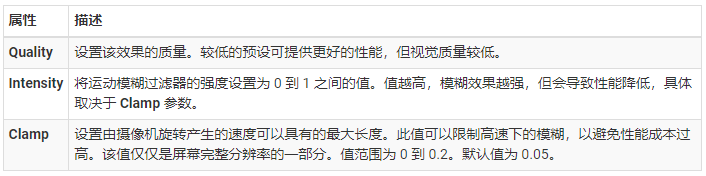 通用渲染管线 (URP) 只会使摄像机运动含糊。