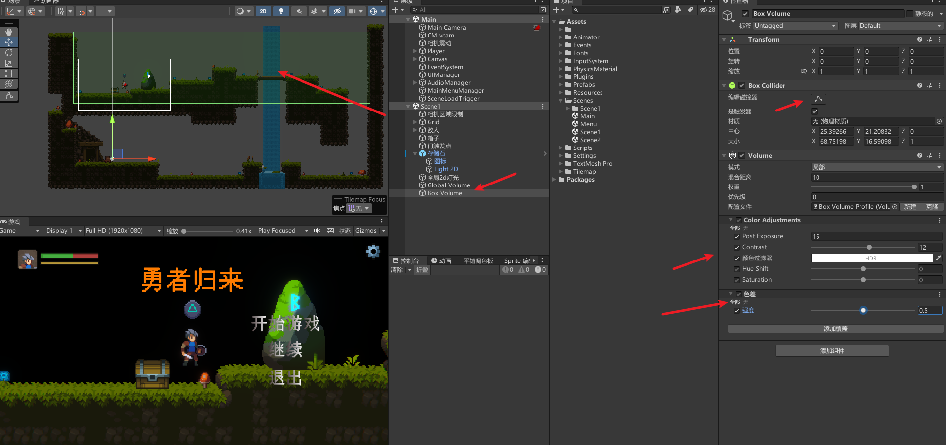 为了实际应用这些新的效果,我们需要添加一个叫做体积(Volume)的东西加入景中。一个Volume指定了场景中的某个特定地区。当相机处于这个Volume中时,后处剖析影响到相机渲染的画面。