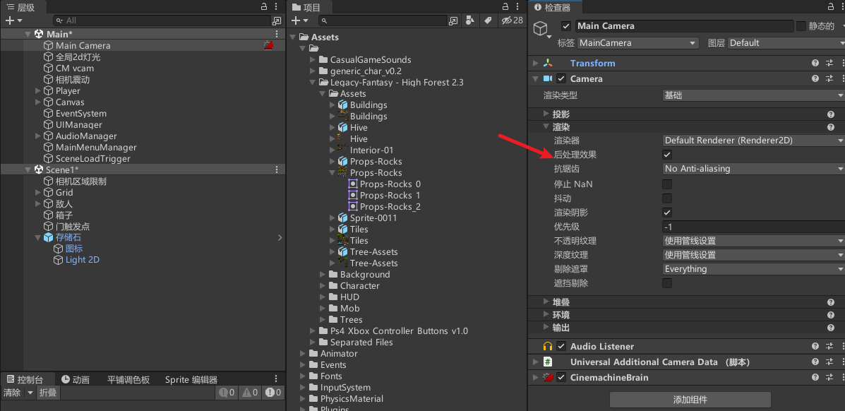 我们先确保Main Camera启用后处理。