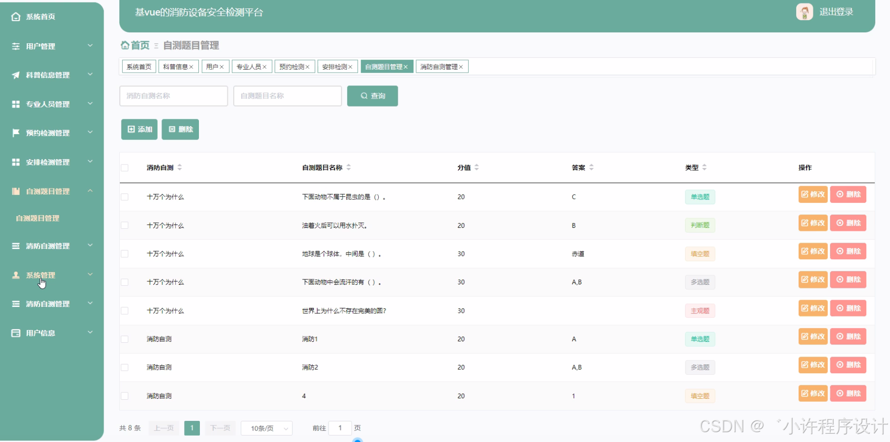 本选题针对消防设备安全检测等问题的研究具有重要的现实意义。随着城市化进程的加速,消防设备的数目和种类不停增长,传统的检测方式难以满足需求。本研究构建的消防设备安全检测平台,可以或许提高检测的效率和准确性,实时发现消防设备存在的安全隐患,有效防备火灾事故的发生,保障人民生命产业安全。