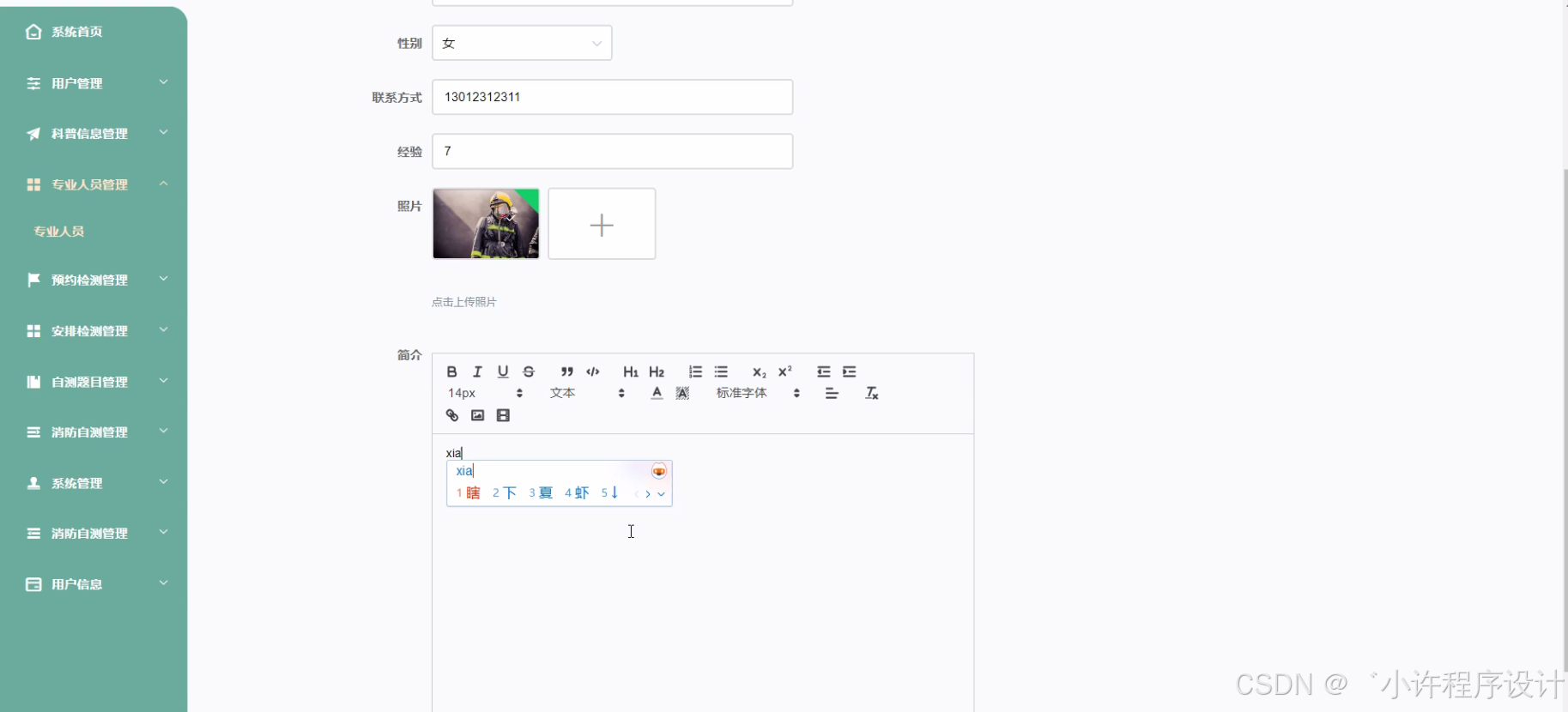 本消防设备安全检测平台以Python为开辟工具,围绕多个体系功能睁开研究。首先是用户功能模块,包括用户的注册、登录、权限管理等,确保不同类型用户(如平凡大众、物业管理人员、专业检测人员等)可以或许在平台上进行相应操纵。科普信息功能旨在为用户提供消防设备的根本知识、安全使用规范、检测的重要性等内容,可接纳图文、视频等情势进行展示。预约检测功能答应用户方便地预约消防设备检测服务,必要计划合理的预约流程和时间安排机制。安排检测功能涉及到根据预约情况、检测人员的空闲时间等因素,合理安排检测任务。专业人员功能包括专业检测人员的信息管理、工作安排等。检测分类和检测项目功能必要明确不同类型消防设备(如灭火器、消火栓等)的检测分类标准以及具体的检测项目内容。送检信息功能要记录送检消防设备的根本信息、送检时间等。检测进度功能可以或许实时显示消防设备的检测进度,让用户实时相识情况。检测结果功能则是准确呈现检测结果,包括是否合格、存在的问题等,并提供相应的解决方案建议。通过对这些功能的研究和开辟,构建一个完备的消防设备安全检测平台。
