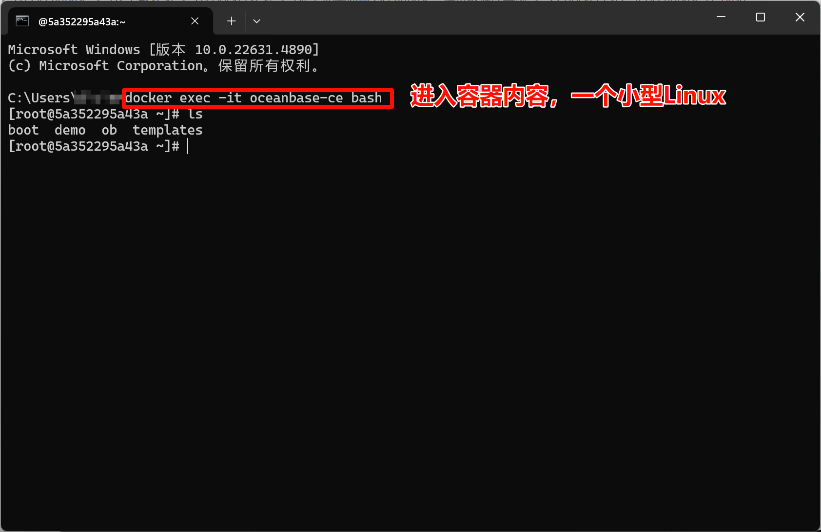 在 OceanBase 的 Docker 容器中还自带了常用的一些工具,在摆设完之后可以直接用来做一些验证。- #切换终端到docker容器
