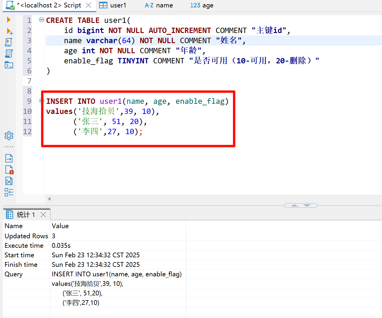 - name varchar(64) NOT NULL COMMENT "姓名",