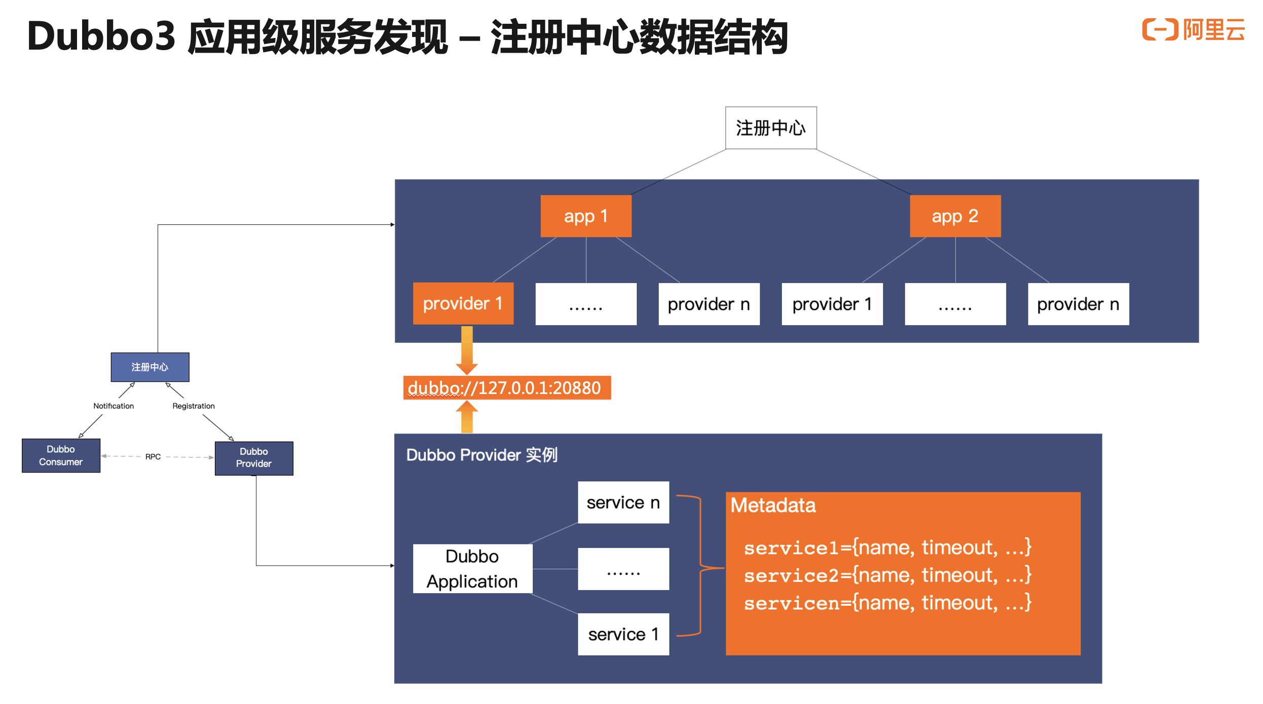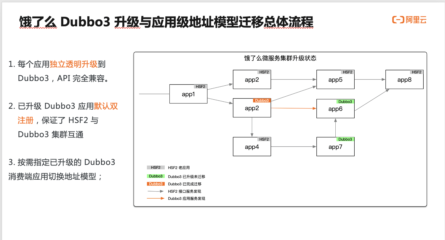 面对百万规模的集群实例,实现关键链路不停推、资源利用率大幅提升的关键即是 Dubbo3 中新引入的应用级服务发现。接下来我们着重讲解 Dubbo3 应用级服务发现的详细方案,同时通过饿了么案例来说明其升级迁移过程。