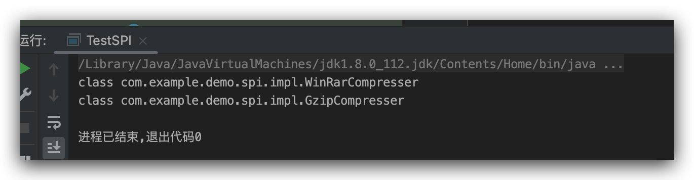 有了上面的接口,实现类和配置文件,接下来我们就可以使用 ServiceLoader 动态加载实现类,来实现 SPI 技术了,如下所示:
