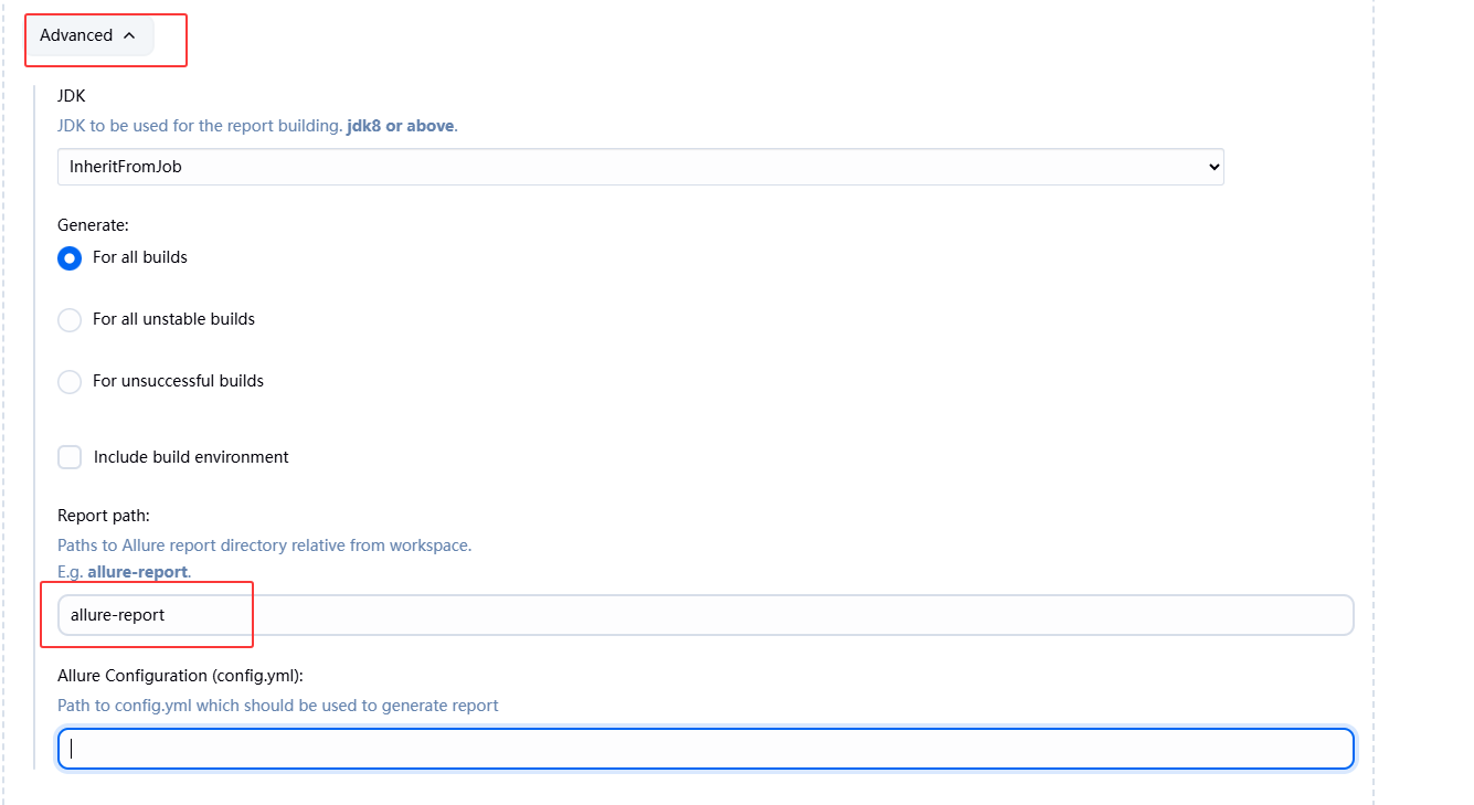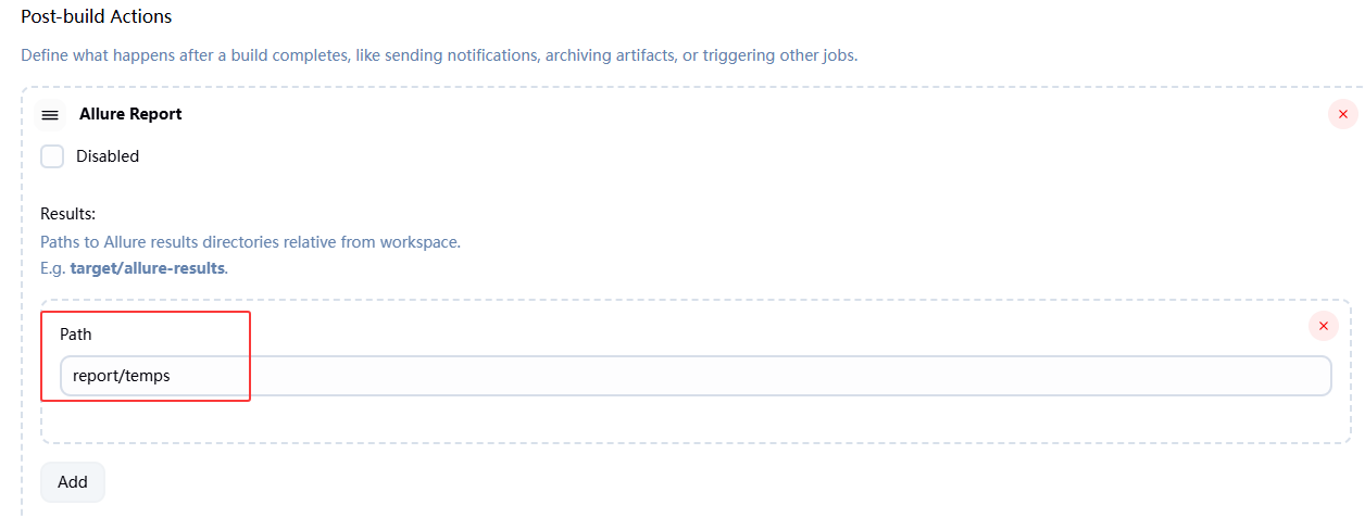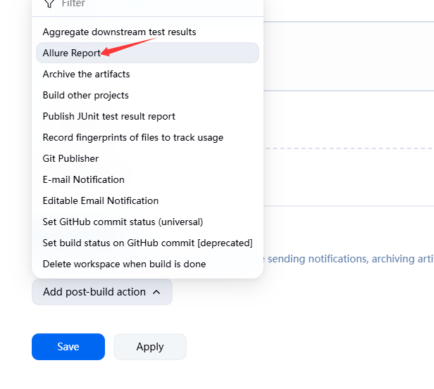 - Add post-build actions ->Allure Report