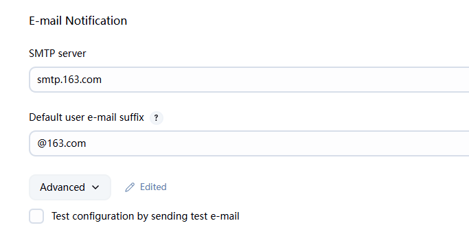 - 邮件的服务器和后缀:Manage Jenkins->System->E-mail Notification