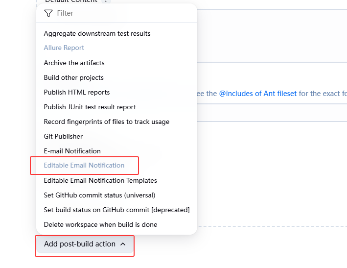 - configure->Add post-build action->Editable Email Notification: