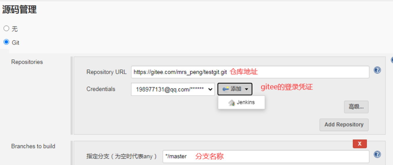 - configure->Source Code Management: