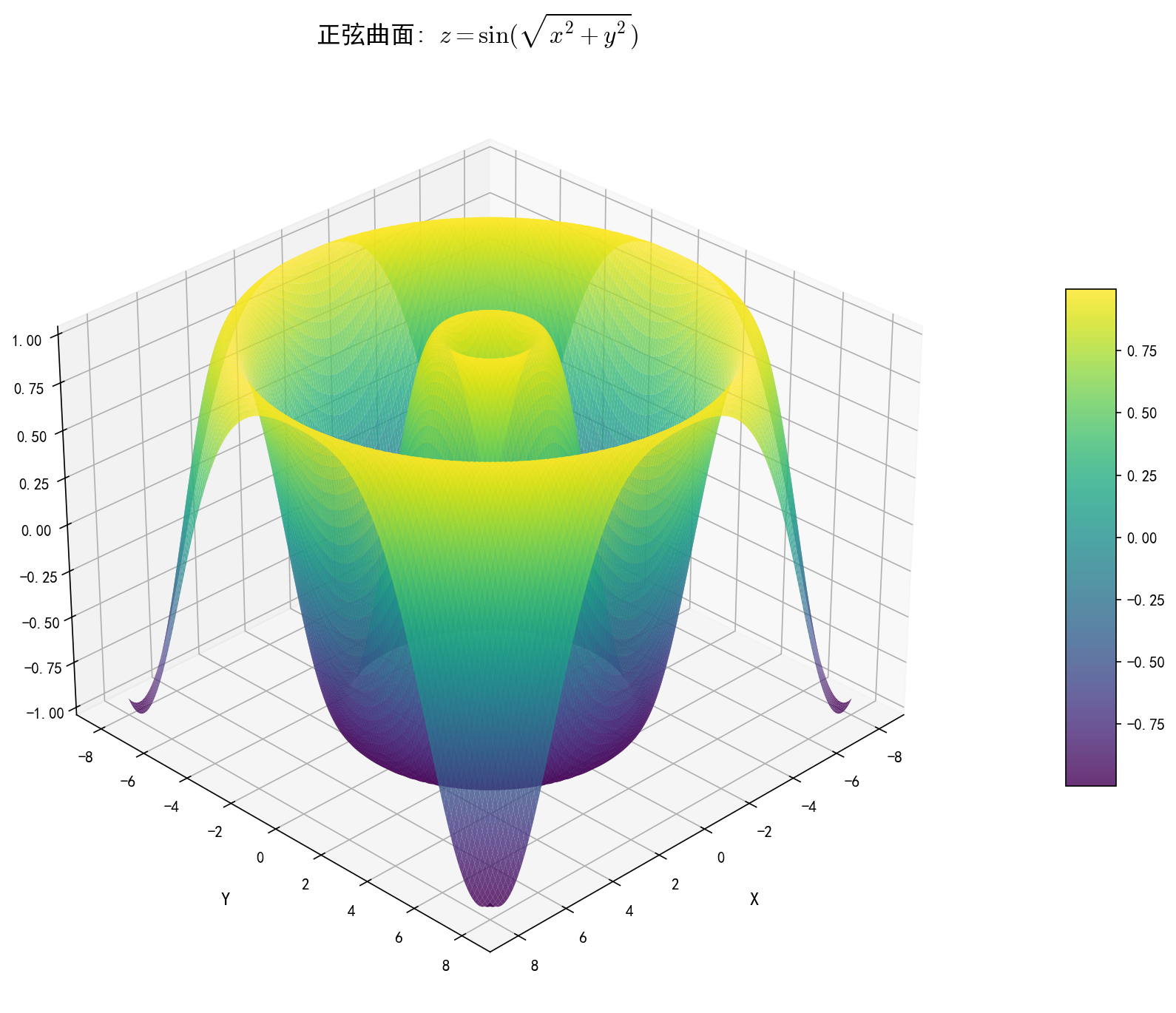 下面是一个完备的使用示例,展示怎样调用上述函数天生各种曲面图像:
