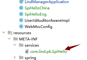 在开发人员使用时,需要注册他的实现类复制代码public static void print() {                InputStream resource = Tool.class.getClassLoader().getResourceAsStream("licence.txt");                ByteArrayOutputStream bos = new ByteArrayOutputStream();                int bufSize = 1024;                byte[] buffer = new byte[bufSize];                int len = 0;                while (true) {                        try {                                if (!(-1 != (len = resource.read(buffer, 0, bufSize))))                                        break;                        }                        catch (IOException e) {                                throw new RuntimeException(e);                        }                        bos.write(buffer, 0, len);                }                ServiceLoader<SpiHello> spiHellos = ServiceLoader.load(SpiHello.class);                Iterator<SpiHello> iterable = spiHellos.iterator();                while (iterable.hasNext()) {                        iterable.next().printHello();                }                System.out.println("value=" + bos.toString());        }