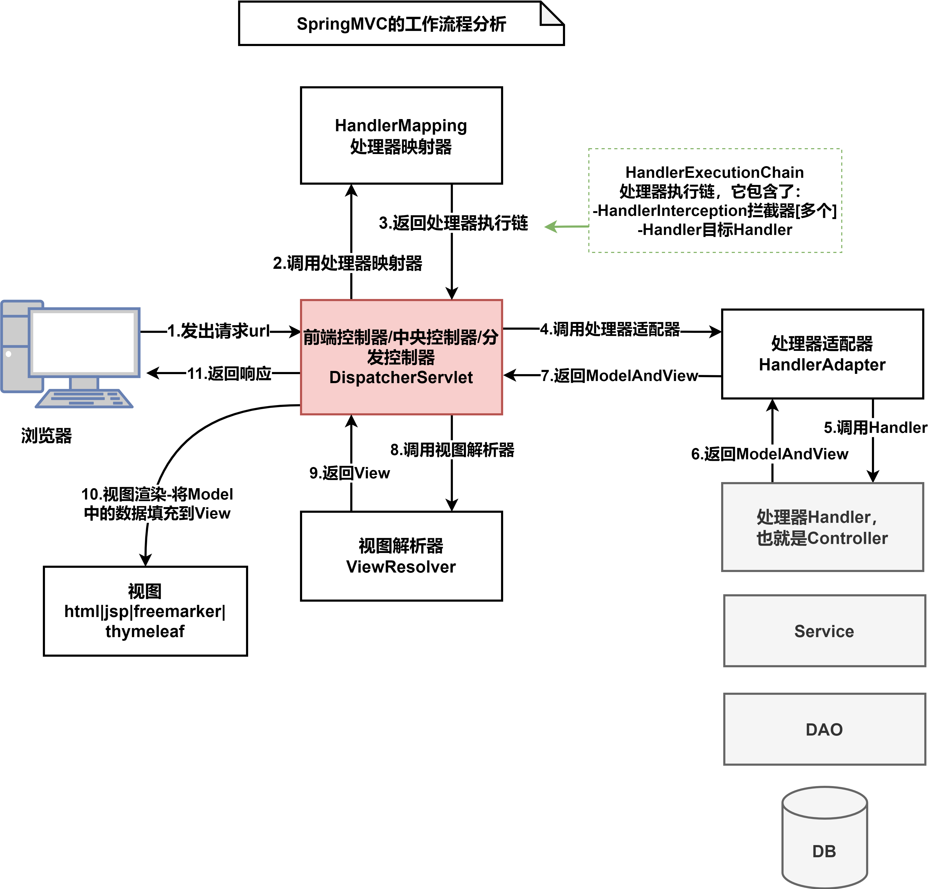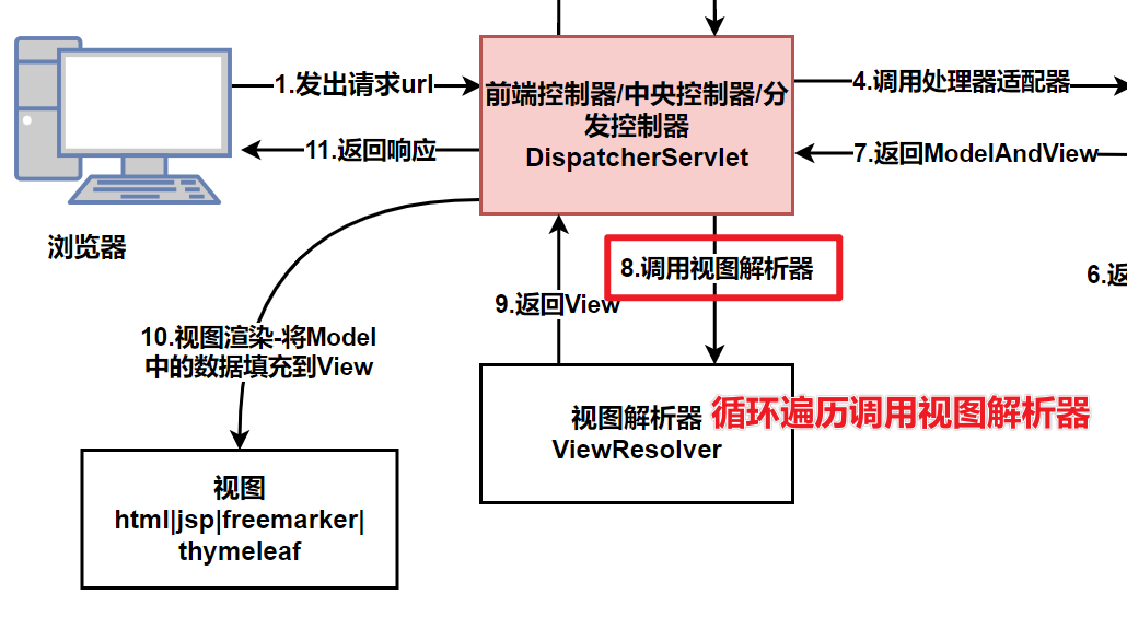 (5)之后就会到该View对象进行视图渲染,然后由Tomcat将数据返回给客户端。