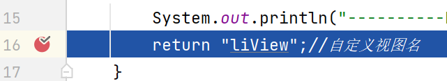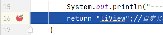 (2)浏览器访问 view.jsp,可以看到后台光标跳转到了断点处: